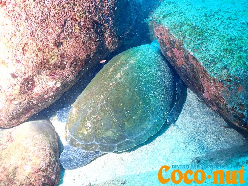今の宇佐美にはアオウミガメが5匹ほど住み着いているそうで、この日は2匹に遭遇